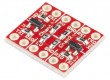 Description: If you've ever tried to connect a 3.3V device to a 5V system, you know what a challenge it can be. The SparkFun logic level converter is a small device that safely steps down either 5V signals to 3.3V or steps up 3.3V to 5V. This level converter also works with 2.8V and 1.8V devices. Each level converter has the capability of converting 4 pins on the high side to 4 pins on the low side with two inputs and two outputs provided for each side.