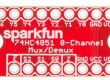 Description: The SparkFun Multiplexer Breakout provides access to all pins and features of the 74HC4051, an 8-channel analog multiplexer/demultiplexer. The 74HC4051 allows you to turn four I/O pins into eight multifunctional, individually selectable signals, which can be used to do everything, driving eight LEDs or monitoring eight potentiometers.