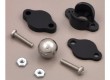 This ball caster kit includes a black ABS housing, a 3/8″ diameter metal ball, two spacers (1/16″ and 1/8″ thick), and two #2 screw sets. The total height of the ball caster, 0.4″, can be increased to about 0.6″ using the included spacers. The two included #2 screws can be used to mount the ball caster to your chassis (the distance between the screw holes is 0.53″).