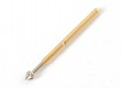 These particular pins are (in our opinion) ideal because they are skinny enough to fit into proto board or perf board - they have a 1.0mm/0.04" diameter body (the gold part) but the spring contact head is 1.5mm (0.06") wide. The uncompressed length is 16.5mm/0.65", compressed is 14mm/0.55"