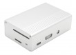 Gabinete de aluminio de espesor 1.8 mm para Raspberry Pi 3 modelo B. Posee ranura para indicador luminoso. Color: aluminio.