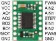 In a typical application, power connections are made on one side of the board and control connections are made on the other. All of the control inputs are internally pulled low. Each of the two motor channels has two direction control pins and a speed control pin that accepts a PWM input with a frequency of up to 100 kHz. TheSTBY pin must be driven high to take the driver out of standby mode.
