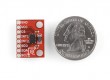 Breakout de acelerómetro ADXL345 de 3 ejes. Posee 13 bits de resolución y mide hasta +-16 g. Posee salida digital I2C y SPI.
