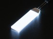 These pretty strips of light are plastic diffused backlights, often seen in LCD displays. Normally they're tucked behind the LCD and shine white light from below. Here, we've got the LEDs available individually and they're really cool! Each LED is encased in a 3.5mm thick strip of a acrylic. The acrylic strip is a special type that is very good at diffusing light, so even though there is only one single white LED, it provides near-uniform lighting. The other flat side of the strip has a reflector on it so you only get light from the top (otherwise the backlight would lose 1/2 the brightness unnecessarily).