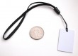 This is a blank MiFare Classic tag embedded in a phone charm. These tags are like those often used for train/bus passes but also found in other systems where a proximity card is desired. The tag contains a NXP S50 chip and an antenna, and is passively powered by the reader/writer when placed a couple inches away. Since this tag has a small antenna, it has to be closer to the antenna than, say, a large credit-card sized tag.