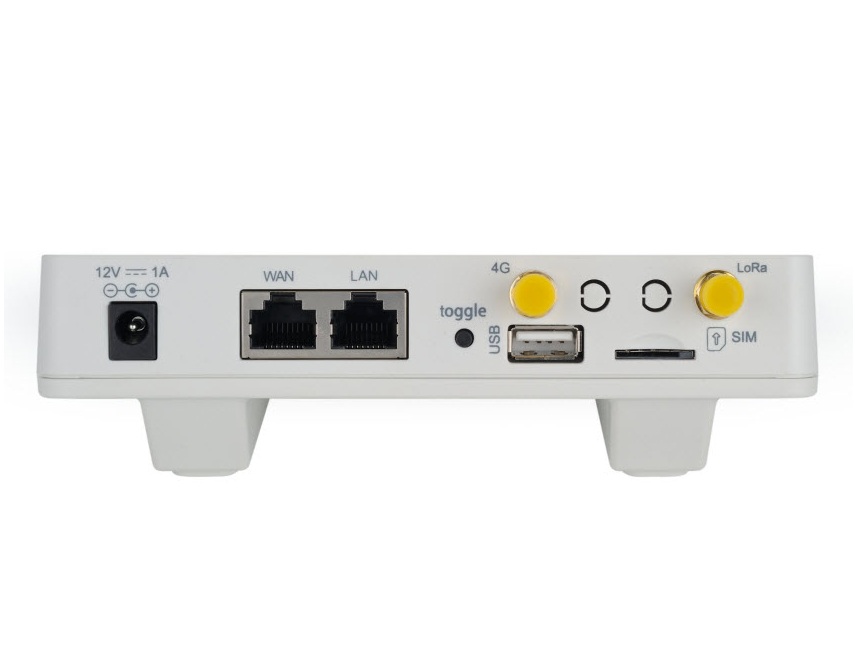 Gateway LoRa compatible con el protocolo LoRaWAN, configurado en 915 Mhz. Posee WiFi, 2 puertos Ethernet de 10M/100M, conectividad 3G/4G (EC25-AU) y slot para tarjeta SIM. Basado en Linux Openwrt. Requiere fuente de alimentación de 12V/1A (no incluida).
