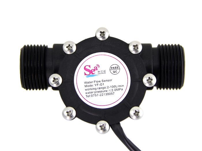 Water flow sensor consists of a plastic valve body, a water rotor, and a hall-effect sensor. When water flows through the rotor, rotor rolls. Its speed changes with different rate of flow. The hall-effect sensor outputs the corresponding pulse signal. This one is suitable to detect flow in water dispenser or coffee machine.