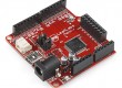 Board con procesador ARM Cortex-M3 con conectores compatibles Arduino y de programación similar.